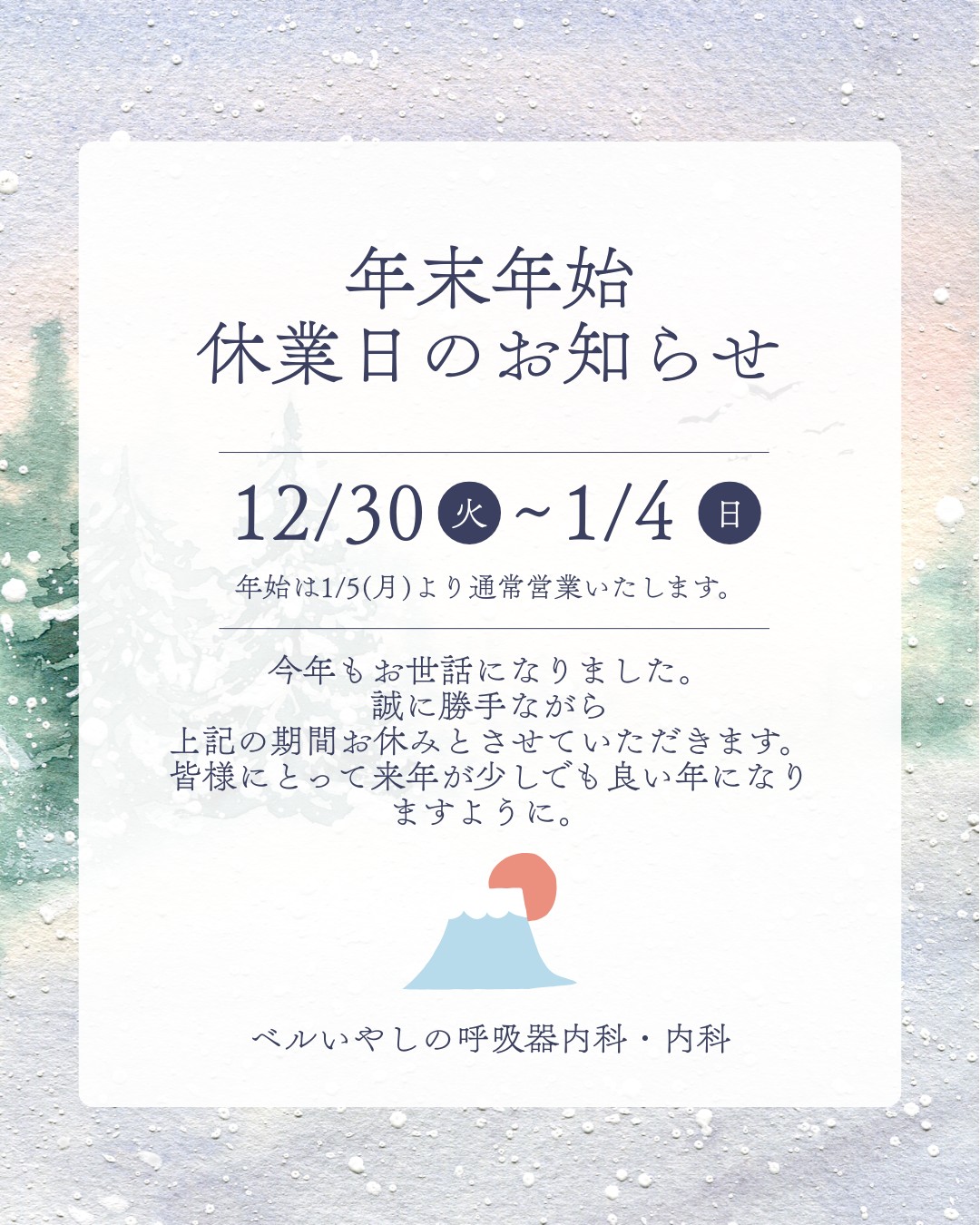 寒くなってきたので急に咳がひどくなってきた患者さんは、早めの受診をお願いいたします。
